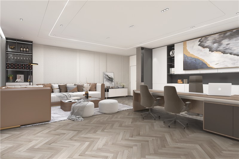 個人辦公室是相對獨立的空間,所以頂棚的燈光需求并不是很高,應盡量采用令人舒適的自然光,如果自然光不夠充足,那么設計燈光時就要對工作面進行重點投光,其余部分進行輔助照明,這樣還能夠營造出一定的藝術氛圍。