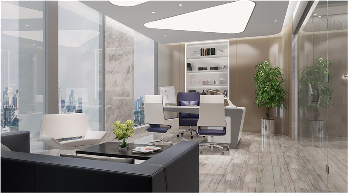 2、科技感辦公室裝修設計案例:辦公前臺空間的設計,設計師對整個形象墻的設計是比較特別的,也富有其藝術感,容易較讓人印象深刻,材質的紋路更加有質感。接待室的設計,設計師主要的目的就是將自然之風引入室內,綠植的出現是此空間一大的亮點。辦公室設計采用多元化的設計元素,力求整體風格與整棟大樓協調、清新、大氣的外觀設計保持一致,既突顯陽剛的企業特質,又蘊涵貴公司新興而**沖擊力的蓬勃發展之勢!總經理辦公室的設計,設計師更偏向于簡潔大方,來體現辦公室的不凡。