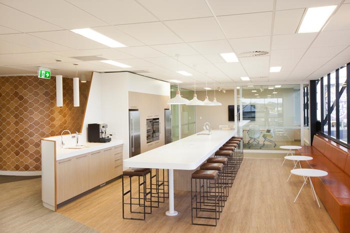 辦公室茶水間的設計:在上海辦公室茶水間的設計上,設計師一直追求的就是空間之間的相互結合,故此茶水間的位置十分重要,設計師將其安置在空間的一側靠近墻壁的區域,以此釋放更多的空間做為休息區之用,此處的休息區呈長方形分布,讓員工可以在這里休息、交流、玩耍。