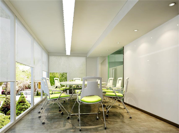 1、職工辦公室設計:整齊地擺放著的辦公桌椅。每個座椅后都配備了文件柜,方便工作人員將資料整理、歸類、查找,也在一定程度上避免了辦公桌上的雜亂。這種整潔而井然有序的氛圍能夠使人鎮靜而愉悅。此外,左側的墻壁上掛著的裝飾畫,文件柜上擺放的陶器和錯落有致的窗簾都為這間辦公室增添了不少藝術氣息,而員工的座椅則選用了明亮的嫩綠,與窗外的樹木相映襯,清新而美麗。與的充滿功能性不同,會議室設計在一定程度上將干凈、清新的風格發揮到了**。整個會議室內除了必備的桌椅沒有其他東西,一是因為空間本身容量有限,只有用淺色調進行辦公室才能讓人產生視覺上的擴大感;二是因為這間辦公室位于陽臺,窗外美景本身就能夠起到非常**的視覺效果,任何多余的配飾都是畫蛇添足。因此,座椅的嫩綠色成為這間會議室裝修的點睛之筆,在內提亮了色調,對外又與窗外景色相呼應。