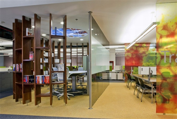 2、某互聯網公司辦公空間設計:在辦公室的不同區域里,有幾面用切割過的石材、木材、以及軟墊和玻璃裝飾成的墻壁,這顯得特有個性。總之,這是一個對到訪者來說溫暖怡人,對員工來說能夠振奮身心的地方。這樣一個辦公場所既要像家一般舒適,又要滿足工作的實際需要,這的確不太容易。