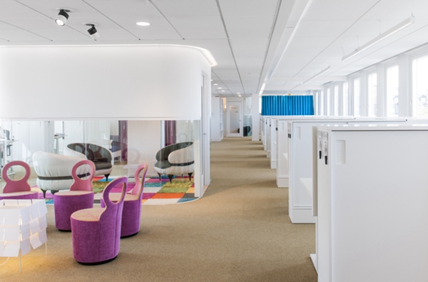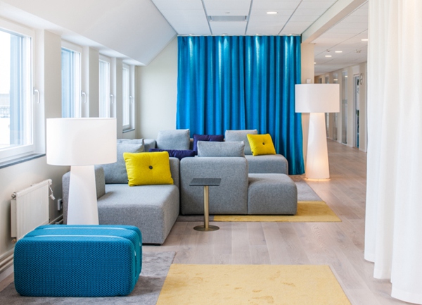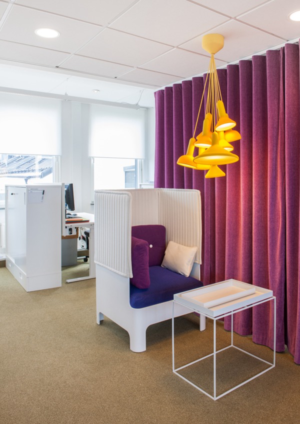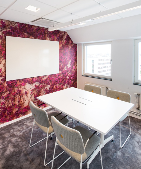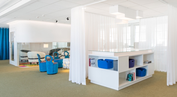 領企設計團隊對原來的空間進行了驚人的改造,煥然一新的辦公環境不僅現代感十足而且多姿多彩,舒適溫馨的氛圍充斥著家的感覺。室內裝飾的亮點應該是各種色彩的舒適地毯、休息椅、窗簾布藝和造型時尚的家具,在該項目中,設計師還加入了更為強烈的藝術元素,辦公室和會議室的墻壁上裝飾了插花圖案以模仿紋理效果和顏色組合。此外,在會議室的墻壁是模擬各種外墻效果,用瓷磚、馬賽克、玻璃磚或彩色玻璃演繹各種生活中常見的場景。