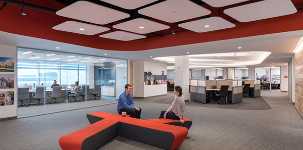 其辦公室裝修設(shè)計(jì)呈現(xiàn)出熱情洋溢、時(shí)尚活力的空間氛圍。躍動(dòng)的色彩激發(fā)著人們的創(chuàng)意靈感;靈動(dòng)的布局鼓勵(lì)員工的深度合作與交流;精彩的設(shè)計(jì)映射出Cimpress與時(shí)俱進(jìn)、不斷發(fā)展前進(jìn)的文化理念。