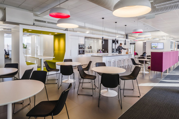 康藍裝飾認為辦公室裝修設計要打破傳統辦公空間中規中矩的呆板感,照明設計要求亮度要高因為明亮的空間可以在一定程度上緩解視覺上疲勞感;色彩不宜過度過艷麗,追求簡約舒適休閑化是辦公空間發展的必然方向。