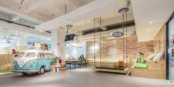 休息區域的設計,創意來自臨時休息站,汽車在旁仿佛會載人穿越無限空間,休息區域因此凸顯出存在的重要性,為員工打造偷懶于現世的菱形空間。