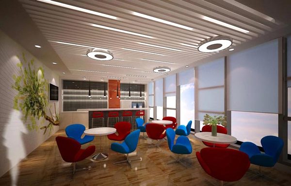 茶水間在現(xiàn)代辦公環(huán)境中是必不可缺的,設(shè)計師在設(shè)計的時候?qū)⑿菹^(qū)域與茶水間相互融合,寓意:適當休息是必要的,也能體現(xiàn)公司管理的人性化。