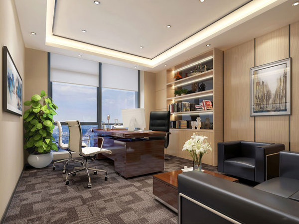 總經理辦公室的設計,設計師在設計的時候,將外部風景很好的引入室內,在完善空間的同時,還可以在人疲憊時給人一絲涼意的屬性。