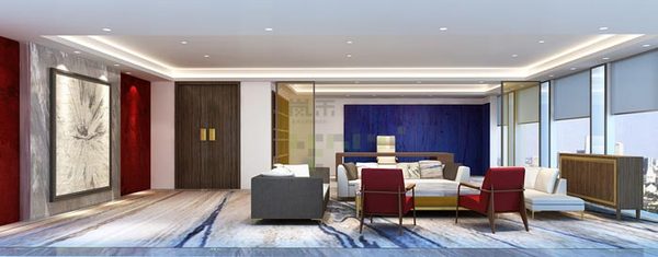 董事會辦公室的設計:設計師在設計的時候,將空間的屬性定為洽談、休息,因為董事們不會經常進入公司,企業只希望在董事們光臨企業的時候可以有落腳之地,故此此地的采光極好,因為此處空間在一定程度上也代表著企業的形象。