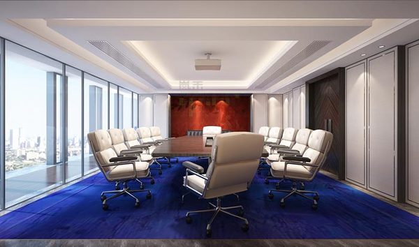 會議室的設計:設計師在設計的時候,將其隔離在一個獨立的空間,同時空間走向與落地窗成平行向,窗外的美景進入眼底,將城市的風景盡收眼底,以此培養人的視野,同時給略顯壓抑的會議氛圍帶來一絲生機。