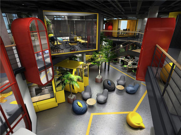 俯視整個空間,可以發現仿佛進入了科幻的世界一般,造成這樣的設計師以不規則的空間格局,在設計師魔法的手中,按照一定的步驟進行融合,以此形成宛如科幻的辦公空間。