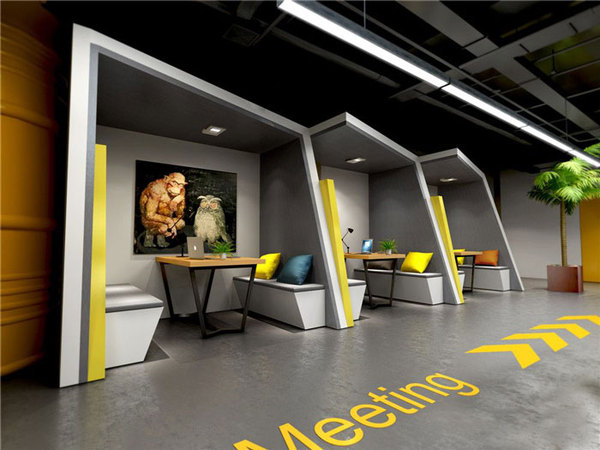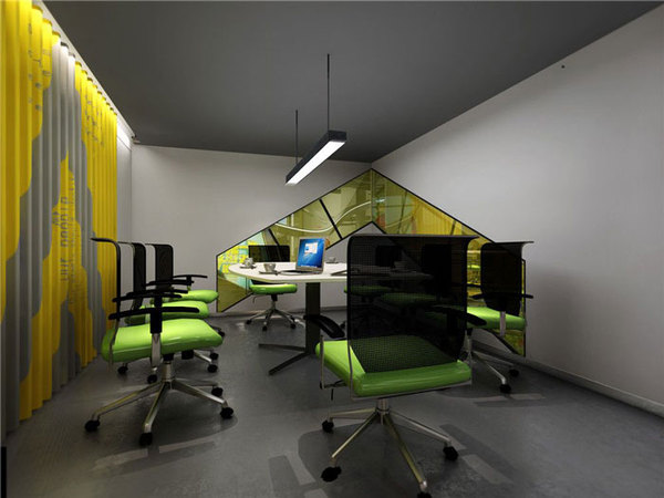 會議室的設計,設計師在設計的時候,采用類似討論空間的模式對空間進行設計,一則在滿足會議基本需求的同時,二則環形的設計利于大家進行討論,**企業得以發展。