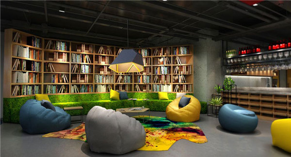 書吧的設計,設計師在設計的時候,以圖書館為原型,利于書架本身的隔離屬性將空間隔離與主空間之外,同時人性化的軟裝休息區域,更為員工打造休息、休憩與減壓。