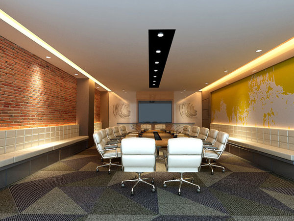 會議室的設計,設計師采用暖色系進行設計,這樣的空間設計給人以溫暖、柔和的空間感受。