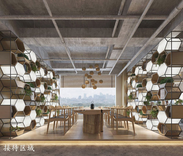 接待區(qū)域的設(shè)計:設(shè)計師在設(shè)計的時候,將其設(shè)置在一個湖光山色的自然空間,設(shè)計師希望通過這樣的設(shè)計拉近企業(yè)與顧客之間的關(guān)系,同時讓客戶對企業(yè)產(chǎn)生一種莫名的信任感,在交流的過程中不斷的了解對方,為下一步的合作留下契機。