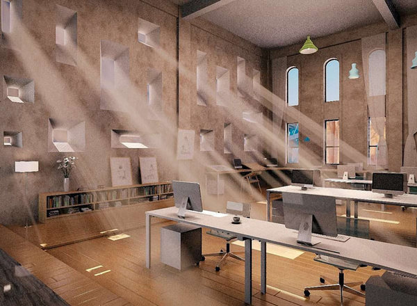 辦公采光的設計:一個夢幻一般的空間展現在大家的面前,一個光的世界融合企業的核心,一個擁有活力的空間融入企業,為企業的發展增加了無限的可能性,設計師認為這樣的空間可以讓企業屹立于其他空間之上、自成一家。