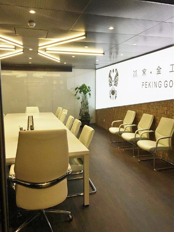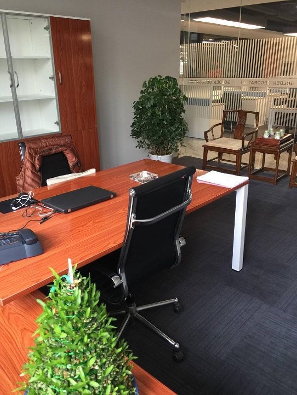 緊接著看到的是貴賓接待區(qū),這一部分的辦公室設計分為兩塊。一塊是中式雕花桌椅搭配屏風樣式的辦公室隔斷,另一部分則是現代風格的皮質包邊椅子搭配木質簡單書柜。這兩個部分的辦公室設計各具特色,但又在顏色上互相搭配,使得整個辦公室設計更加和諧。