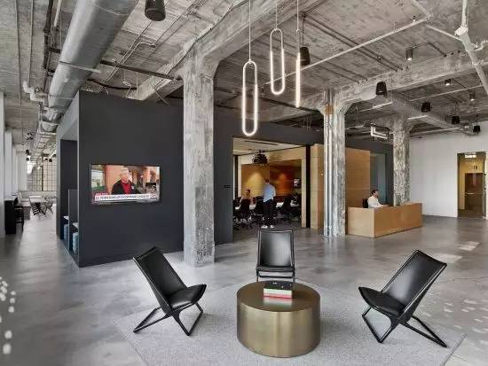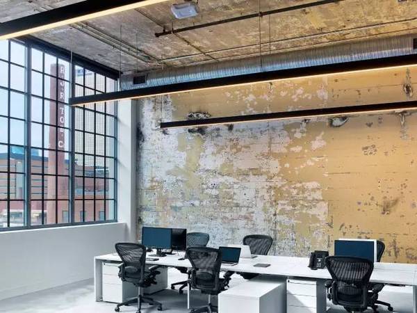 結構柱和梁暴露在外,依然覆蓋著近乎一個世紀的涂料,*小程度的噴砂以防止剝落。表面和家具的靈感來自原始空間;自由形式盒子被包裹在膠合板和深灰色的板巖,椅子顏色從混凝土墻上采樣。設計師設計了一個穿孔金屬網系統,以允許整個辦公室的開放性和流動性。