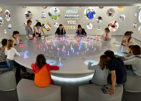 象征當下的Forum部分,通過交互式裝置,讓觀者意識到營養與健康行業的社會責任。象征未來的Visions部分,參觀者可以通過游戲和虛擬現實來體驗科學家的熱情和他們創意十足的發明。在一次次的互動體驗后,參觀者可以通過此次展會場地的辦公室裝修與設計所傳達出的理念以及自己的感悟來體會這個企業關于過去、現在和未來的每一段旅程,感受著一百五十年的歷史所蘊含的雀巢精神。