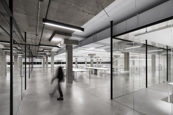 這個黑白灰的經典工業風格就是 Accesolab位于墨西哥的辦公室設計了?;疑谶@里的使用程度只能用一個詞來形用——鋪天蓋地。從天花板到地面,從燈具到桌椅板凳,無不是用各種明暗程度不一的灰色裝飾。但是設計師選用了帶有線條的地毯和直線延伸的吊頂,辦公室空間的工業氣息一下鋪面而來。