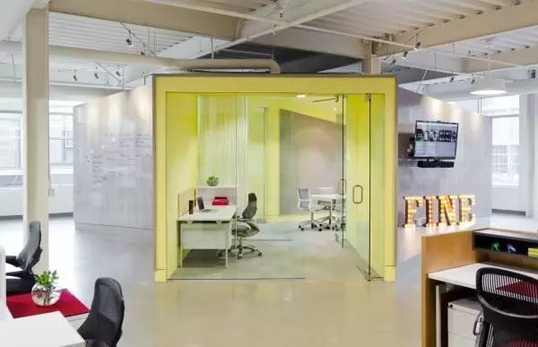 公司要求新的辦公空間是開放式的,并且給人輕松的感覺。設計師利用輕快的色彩搭配,營造了空間的整體氛圍。辦公空間中劃分出會議室、辦公區、餐廳、休閑區等。浮在空間和房屋兩個辦事處和代理機構的會議室。谷倉的復雜形狀創建不同的程序區外,臺球區的機會是庇護一方而團隊的工作空間面對廚房和開放的工作站。