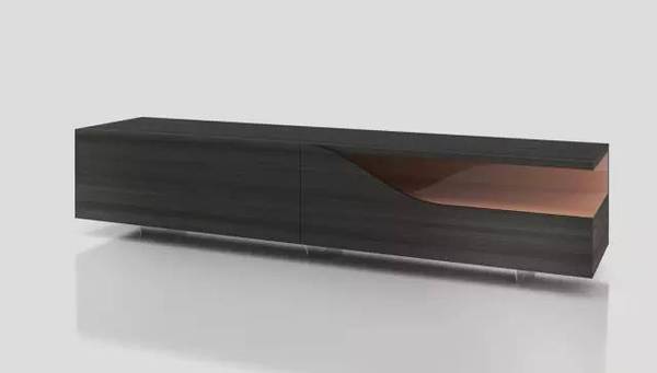 *簡單的電視柜有一塊弧線形的透明玻璃