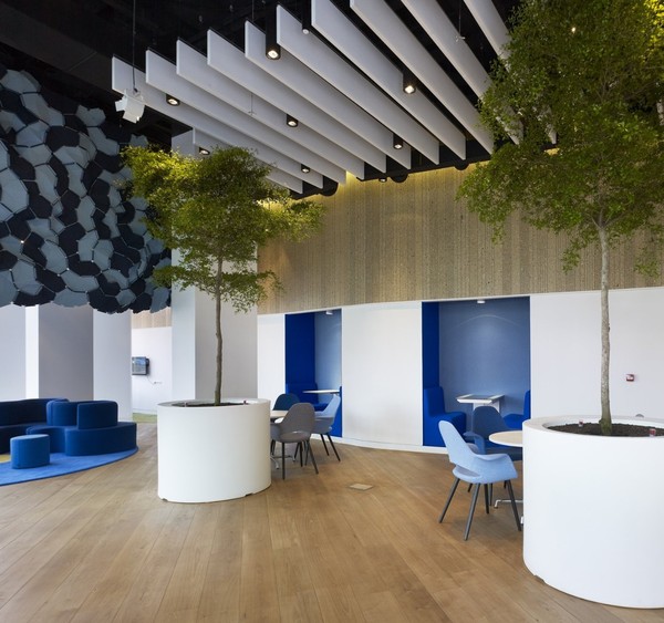 這個地方不僅僅只是訪客中心,它還必須兼具其他多種功能,比如用來傳達與公司產品有關的信息、發布新聞、舉行會議、服務客戶、供員工們吃飯休息喝咖啡、或者僅僅就是等人。