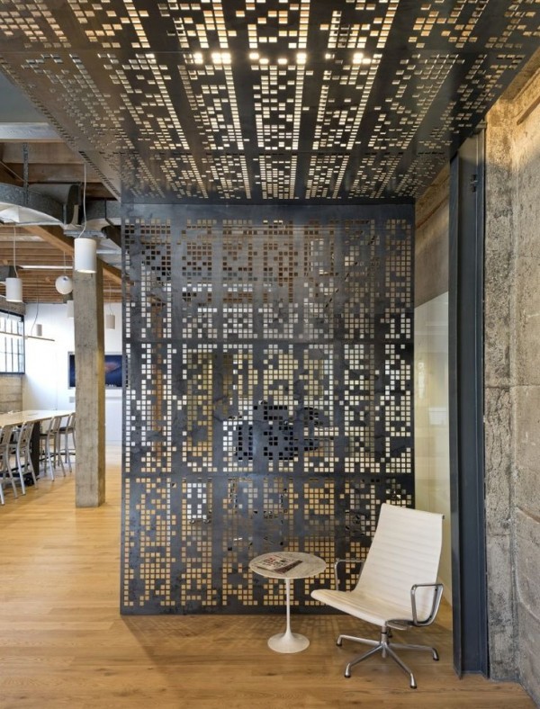 從天花板延伸下來的整體一致的隔斷,金屬制的外觀也很好地呼應了室內工業化的風格。