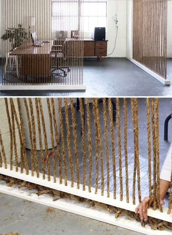 用線繩跟木板,相當容易的DIY別致隔斷,在材質上追求自然,出來的空間效果也令人印象深刻。