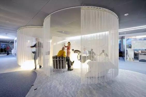 拼湊在一起的白色隔板,輕柔有質感的隔斷展現出來。