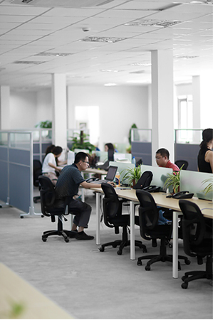 辦公區(qū)域的設(shè)計(jì)是整個(gè)公司里*為自由的區(qū)域,工位連成一片但是距離的保持并不會(huì)讓人覺(jué)得狹窄擁擠,沒(méi)有過(guò)分拘束的辦公氛圍讓員工大可以卸下緊張情緒,輕松辦公。綠色植物盆栽在室內(nèi)隨處可見(jiàn),飛拓企業(yè)對(duì)于裝飾及綠化的重視程度可見(jiàn)一斑。