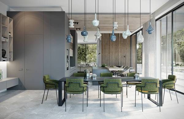 這個現代化的室內是為離莫斯科不遠的私人住宅而建的。使用簡單廉價的材料和一些昂貴的家具,但取得了良好的效果。