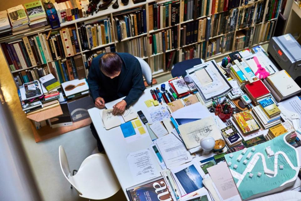 相較于美輪美奐的辦公室,安藤忠雄似乎認為亂哄哄才是辦公室的真正魅力。一面又一面的書墻、堆到天花板的文件、看不到桌面的書桌和所有莫名其妙的小東西,凸顯了安藤忠雄不為人知的一面。可即便如此,這間辦公室的雜亂與忙碌也沒有干擾到安藤忠雄的工作,反而還為他提供了無窮的創意。