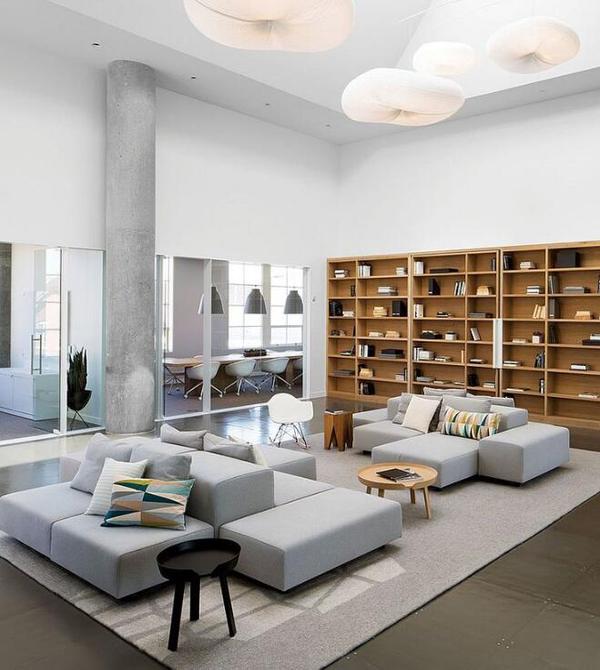 接待室的部分是洽談和訪客等待的地方,往往也是展示產品和宣傳公司形象的場所,裝修應有特色,面積則不宜過大,通常面積在十幾至幾十平方米之間,家具可選用沙發茶幾組合,也可用桌椅組合,必要時可兩者共用。如果需要,還可預留陳列柜、擺設鏡框和宣傳品的位置。
