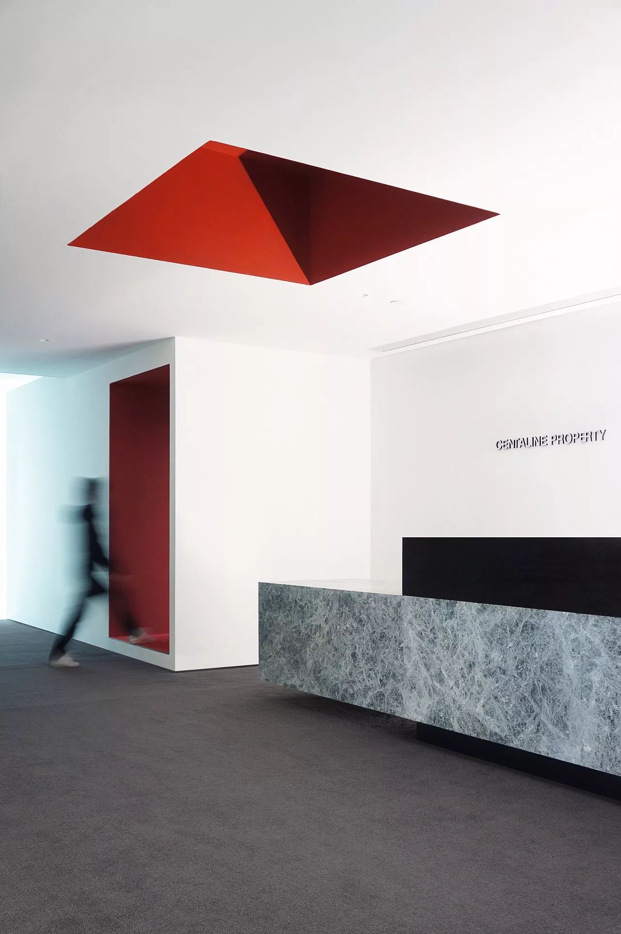 大廳天花頂部的開孔與立面的開孔相呼應,呈現豐富而有趣的空間構成和層次的延伸感。