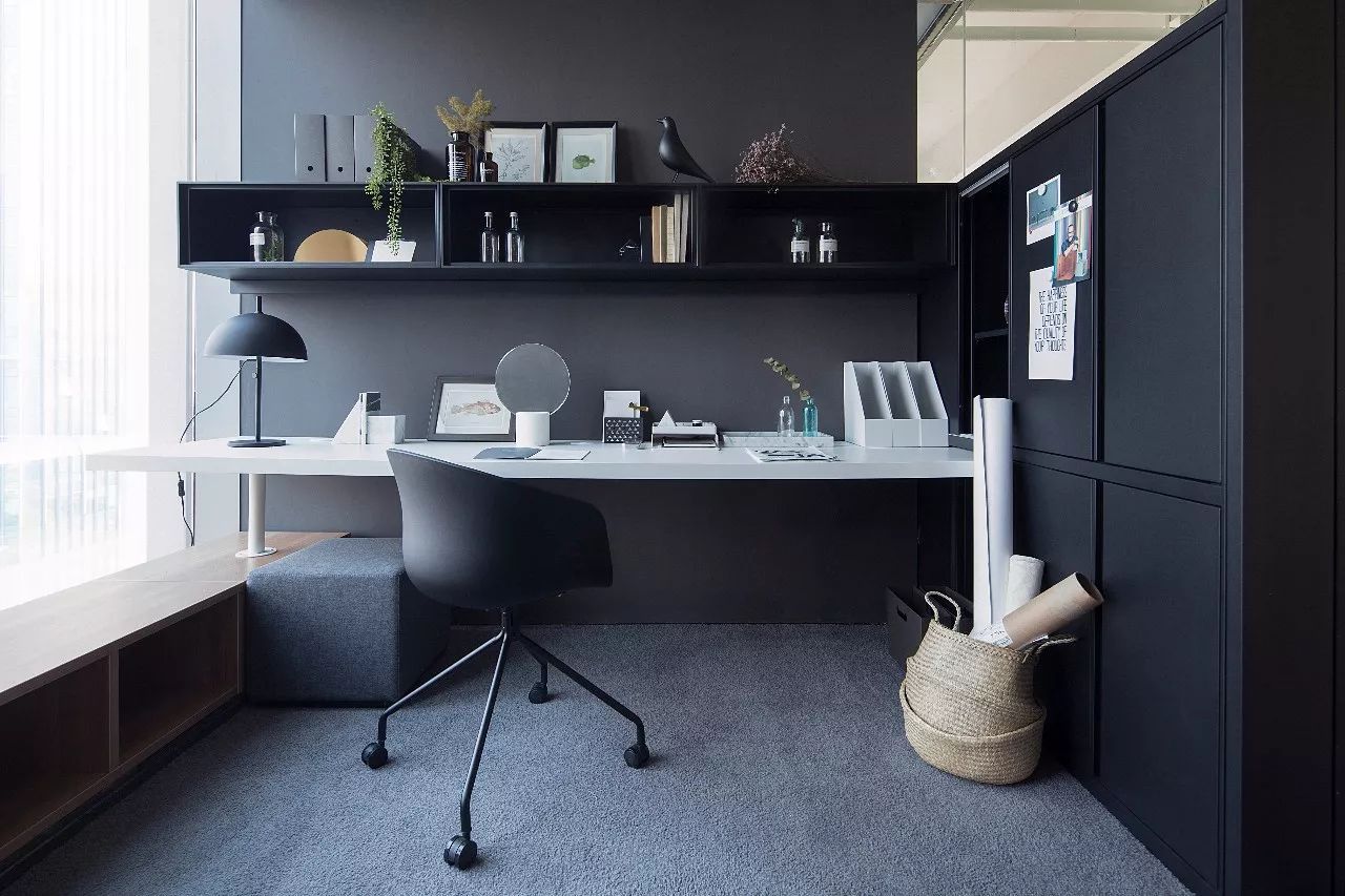 9㎡部門經理辦公室,在功能布置上做了很大的改變和創新,所有的功能構件沿著空間四周墻面布置,儲物、辦公、休閑、閱讀及交流等,非常巧妙的銜接,使得小面積卻擁有寬敞舒適之感。