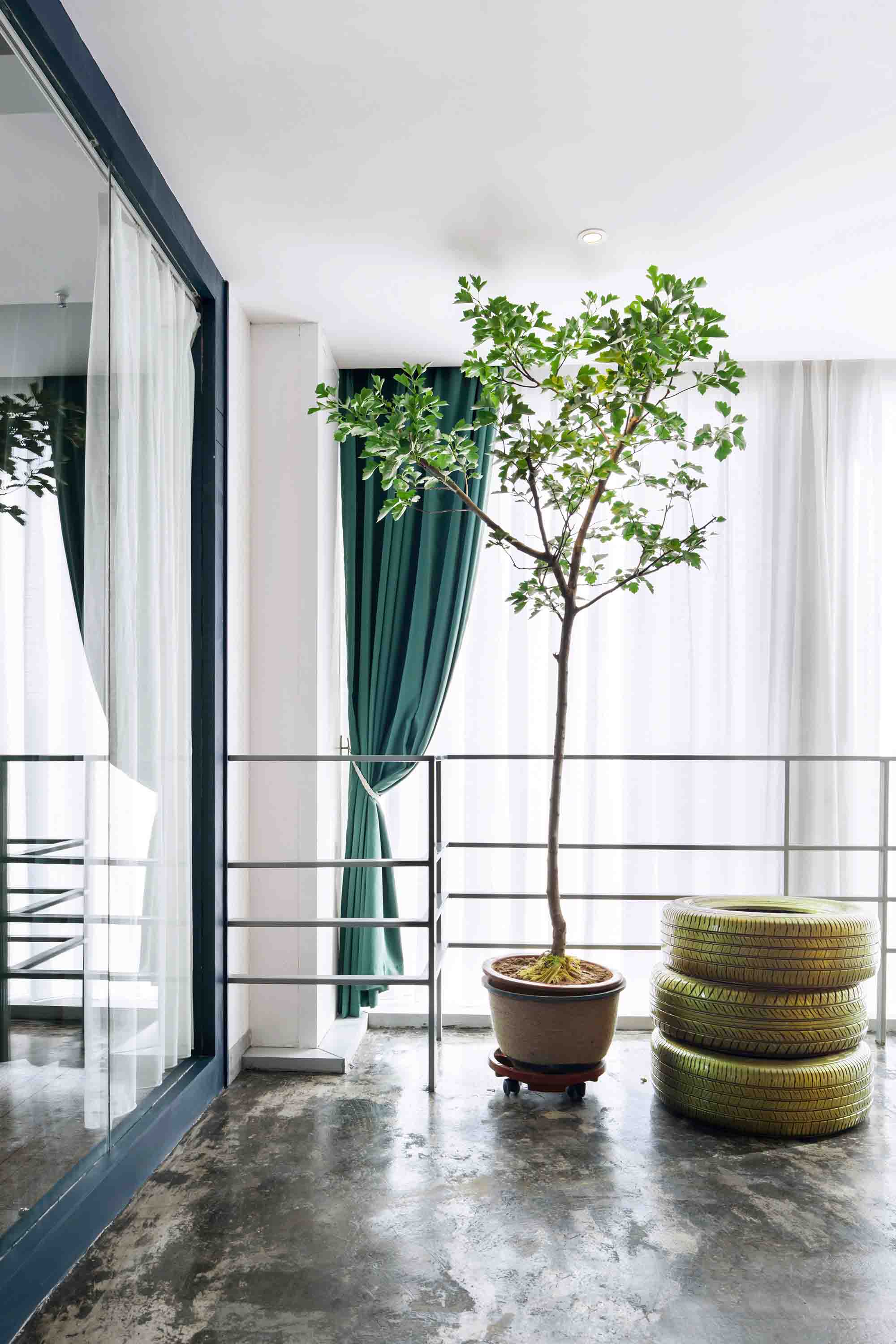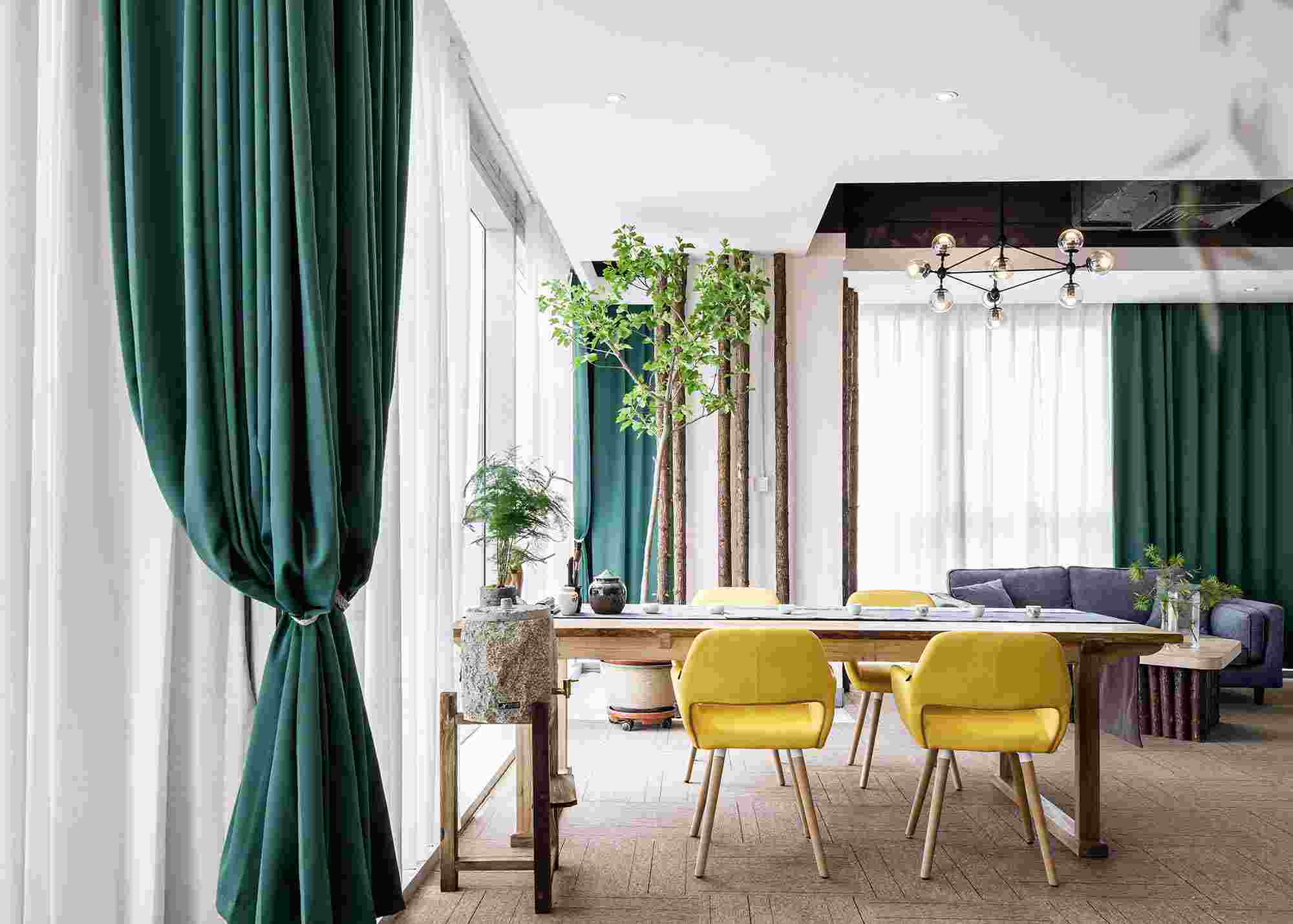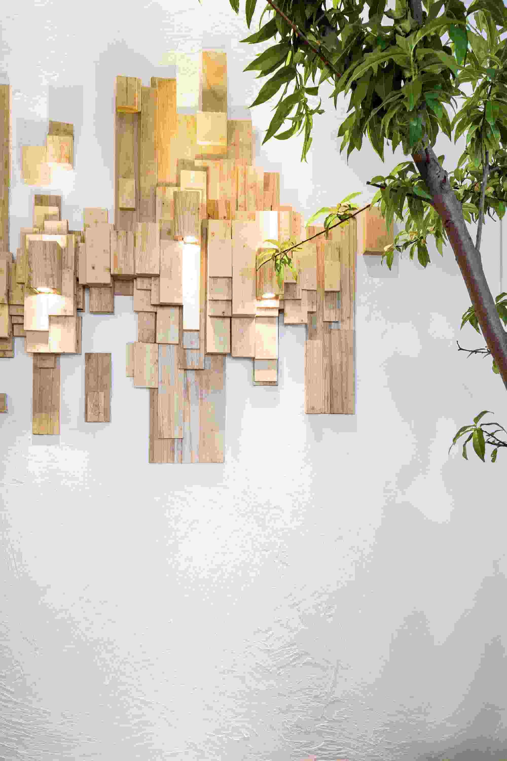 東方的美學向來是含蓄溫婉的,LOGO墻處的玻璃透景配合自然的竹石,隨著太陽的變化,光影也在不斷的變化,猶如人生。在材料的運用上選用的都是一些環保低碳的天然材料,如樹枝、石竹、枯木、天然原木板,地面則是采用了水泥自流平的方式。