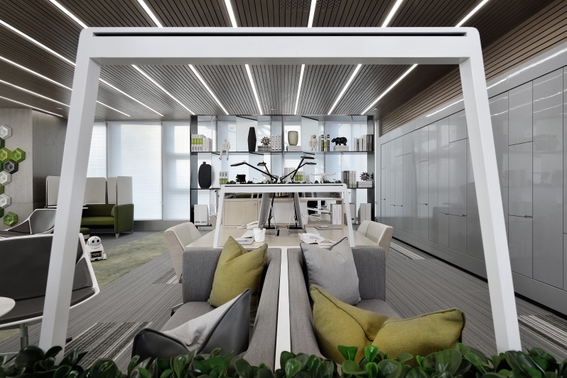 科創辦公樣板房位于3號樓,本案虛擬客戶為互聯網類企業,設計師提出“APM OFFICE”的設計概念,希望打造全天候辦公的設計理念,辦公場所能隨著時間變化而將環境進行相應變化,為員工提供更加自由輕松的辦公氛圍。