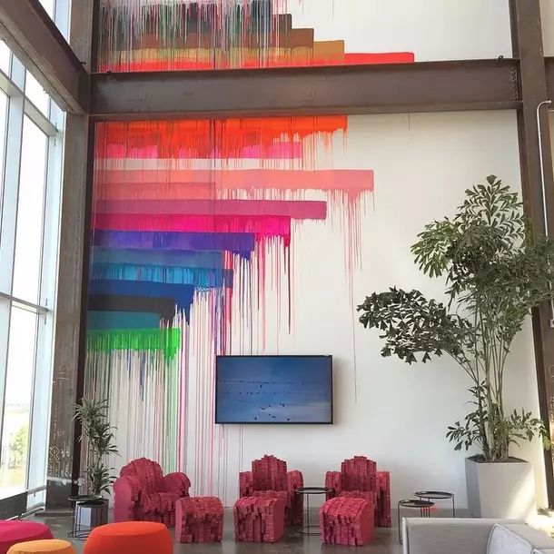 大部分墻面都被畫上了各種風格迥異的主題涂鴉,雖然Facebook委托了專業的藝術家進行創作,不過很多作品都是員工自己畫上去的。