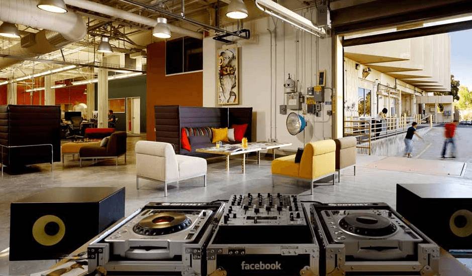 Facebook的辦公室則主打青春校園風。“建筑本身得是非常簡單的,不花哨的,” Facebook 創始人兼 CEO 馬克·扎克伯格(Mark Zuckerberg)說,“我們希望當有人進入這個空間的時候,可以感受到連接世界才是我們的使命。”他要求建筑的設計必須是靈活的,以應對 Facebook 不斷調整的業務形式,而且必須要能夠體現促進協作以及公開透明的公司文化。