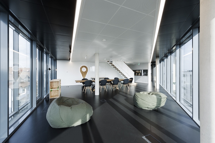2、國外400平方米簡約時尚辦公室設計:精心選擇的材料——實木桌子、天然橡膠地板、集裝箱和用綁帶固定在廚房天花板上的松木,這些元素再加上蠟的金屬墻面,形成微妙的對比。有過多次海上經歷大型的集裝性成為辦公室的亮點,在辦公室施工階段,集裝箱是用起重機吊進室內,集裝箱內部是一間會議室。開放式的整體概念清楚的展示了在這兒工作的雇員,一家年輕、有活力且有宏大目標的公司——保護地球資源,不浪費,用長期發展的眼光采用綜合的方式。
