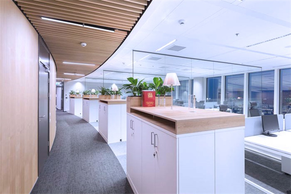 2)弧形動(dòng)線布局設(shè)計(jì),可提高辦公功能上的可視性和辦公機(jī)動(dòng)性,對(duì)辦公室裝修效果也有一定幫助;