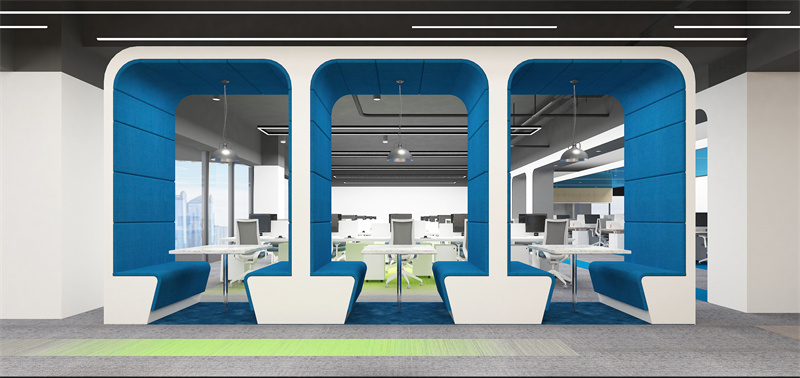 2、在辦公室裝修中不同的顏色會帶給人不同的心情,淺色、藍色可以使人產(chǎn)生放松感。藍色很容易讓人安靜下來,它代表著寧靜,也有研究表明人的身體處于藍色的房間能夠放松神經(jīng),在輕松安靜的環(huán)境中辦公是非常舒適的,因此藍色也是辦公室設計中常用的顏色。