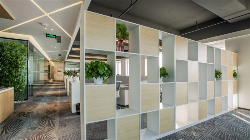 活動隔斷常用的分為:屏風(fēng)隔斷、植物隔斷、矮柜隔斷。屏風(fēng)隔斷用在酒店、中式風(fēng)格辦公室居多,因其特點是小巧輕便,可以隨意移動,彰顯出公司的文化底蘊,營造一個文雅、恬靜的辦公環(huán)境。植物隔斷與矮柜隔斷可以相結(jié)合,植物能提升辦公室的生機活力,而矮柜則還有收納功能,文件物品都能放在這,不會讓空間沉悶壓抑。
