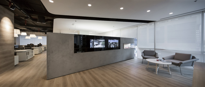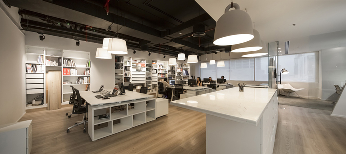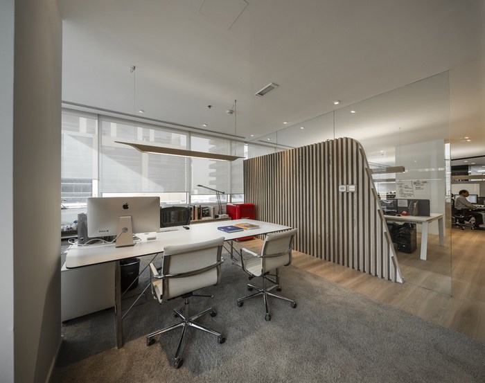 此外,自定義的燈掛在整個辦公室,可以根據*終用戶個性化。設計師整合背后隱藏的門廚房。由于沒有窗戶,它的內部被設計成一個小咖啡店,考慮到一個溫暖的氣氛(在墻上的瓷磚,鵝卵石地板磚,更經典的廚房單元,咖啡桌)。總體而言,這個項目已經取得了一個正確的平衡空間,材料和功能,考慮到的挑戰,其結果正是客戶所期待的:一個友好的工作環境與觸摸的“哇效果”的游客。